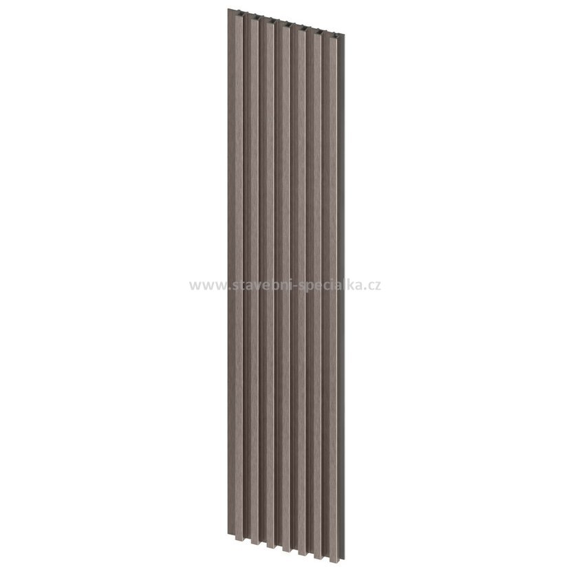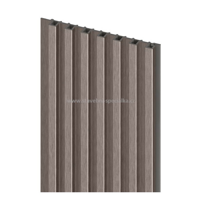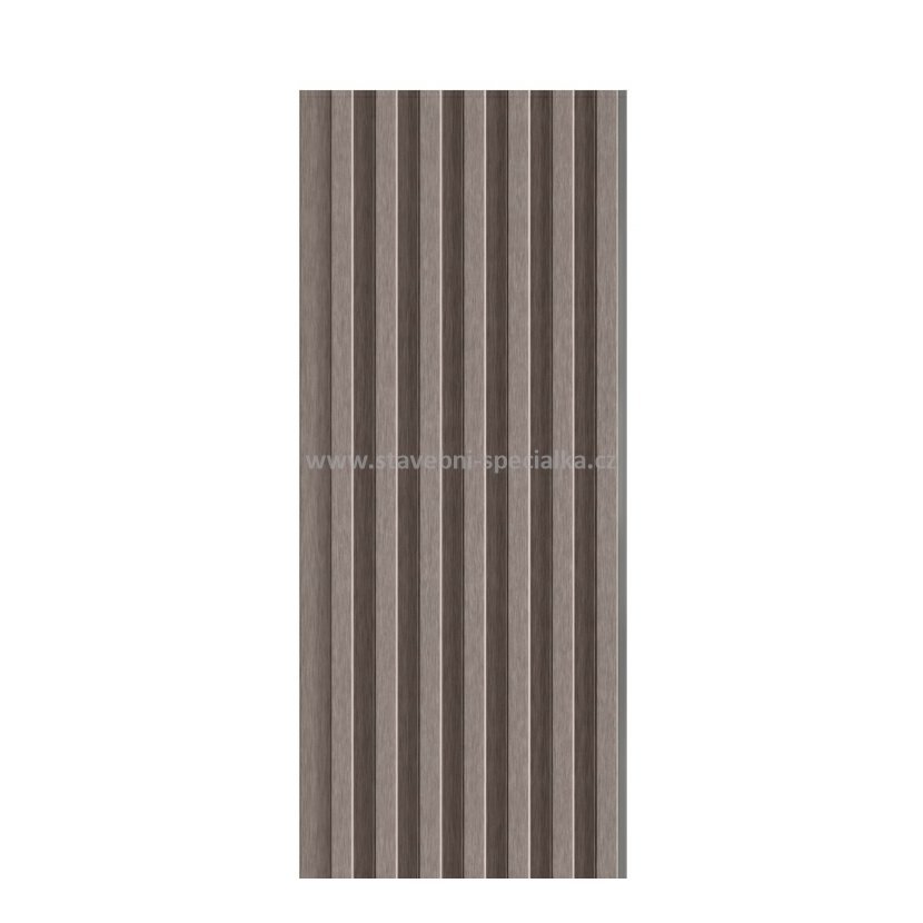 Interiérový obkladový lamelový panel z bytelného kompozitního jádra a odolné dekorační fólie