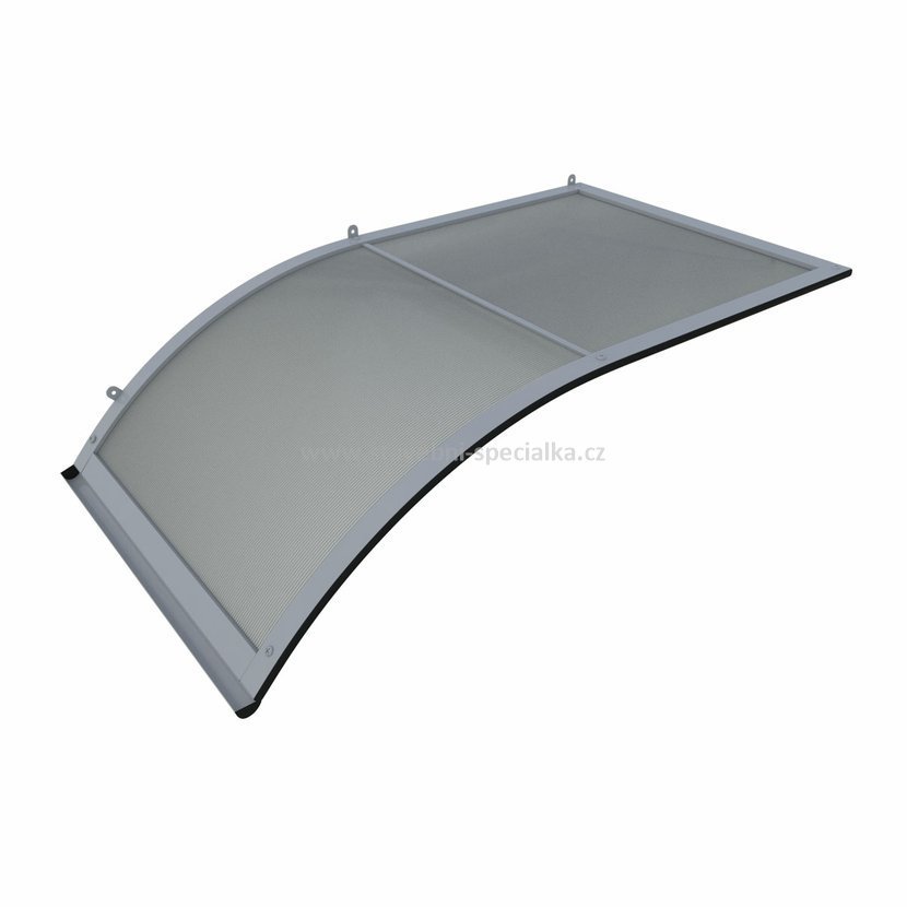 Stříška nad vchod jednostranná je stříška u které si můžete volit na kterou stranu chcete u místit její půloblouk tzn. lze stříšku montovat s obloukem vlevo či vpravo, stačí přemístit montážní úchyty. Jednostranná stříška má hliníkové nosné profily opatřené práškovou barvou. Výplň stříšky je tvořena komůrkovým polykarbonátem o síle 4,5mm. Stříška se vyrábí v rozměrech: rozpětí 160cm hloubka 75cm a výška oblouku 75cm. Tahle varianta má bílý rám a čirý polykarbonát. Stříška se dodává včetně montážních prvků.